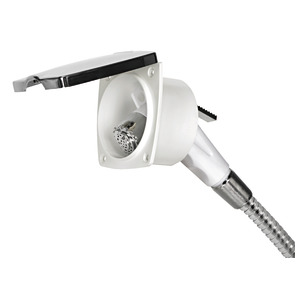 Prysznic z tworzywa sztucznego z chromowaną głowicą, schowek z tworzywa ASA odpornego na działanie promieniowania UV.