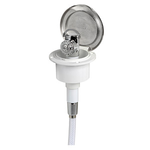 Prysznic z mosiądzu chromowanego, schowek w kolorze białym z tworzywa ASA, odpornego na działanie promieniowania UV.