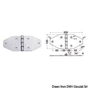 Duże zawiasy ze stali inox AISI 316 polerowane na lustro, oś mm 8.