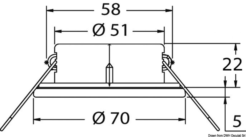 Obudowa ze stali inox. Soczewka z matowego szkła. Podwójny system mocowania: śruby ukryte lub sprężyny wewnętrzne ze stali inox.