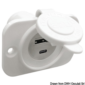 Z nylonu, z wieczkiem zabezpieczającym gwarantującym wodoszczelność. Wejście 12/24 V. Wyjście USB 5V.