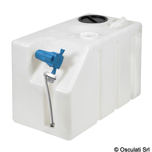 Zbiornik z polietylenu do użytku spożywczego już zamontowany z autoklawem 16.512.12 (12V), wydajność 12,8 l / min. lub z autoklawem Whale Watermaster 16.700.13 (12V), wydajność 11,5 l / min.