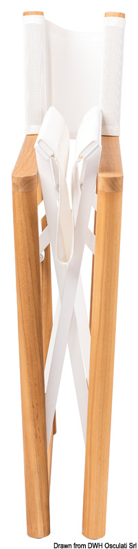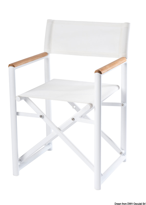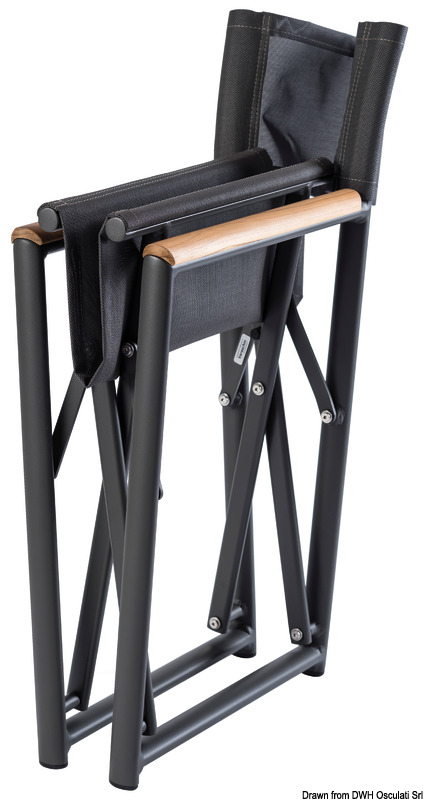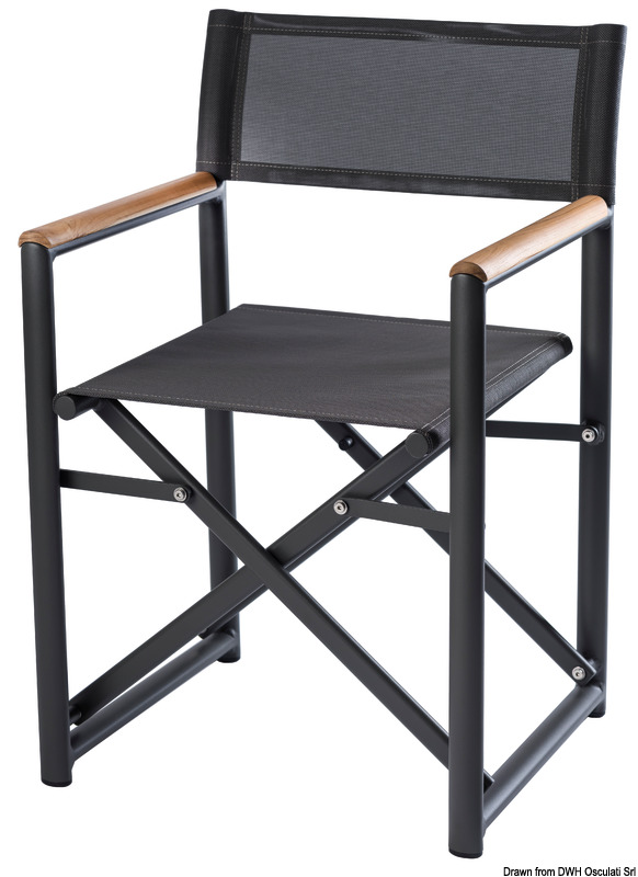 Konstrukcja z lekkiego stopu lakierowana proszkowo, poręcze z drewna tekowego, oparcie z batylenu odpornego na działanie promieniowania UV, słońca, niepogodę itp.