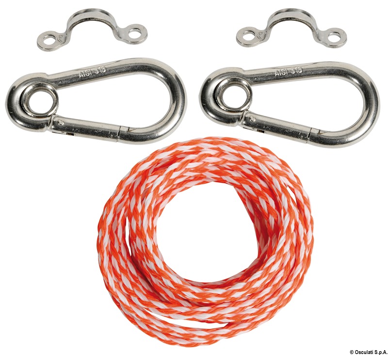 Изготовленная из зеркально-полированной нержавеющей стали]. Комплектно с тросом, карабинами и мостиками из нержавеющей стали для крепления к подстилочному мату.