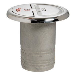 Технические характеристики: крепление-защелка с поворотом на 45°; выступ над палубой всего 7,7 мм; потайные винты; нержавеющий тросик на пружине; вариант исполнения fuel и diesel с креплением для провода массы; материал - нержавеющая сталь AISI 316 зеркальной полировки; пиктограммы по нормам DIN.